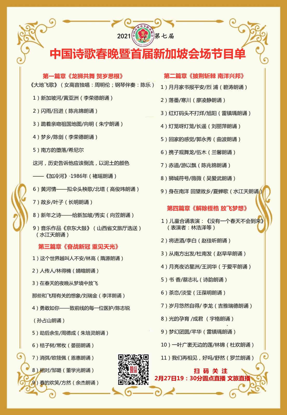 恭贺2021年第7届中国诗歌春晚暨首届新加坡会场圆满成功!